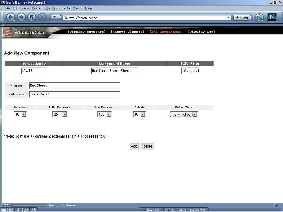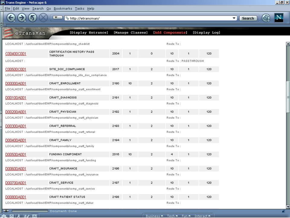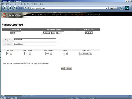 Health care's computing environments require administrative vigilance. Performance and security monitoring, failure and alert management, and a host of other operational tasks are more difficult in a distributed environment. We also designed web-based administration capabilities to bring eCommerce applications on-line and off-line. The easiest way to address this was to use the interface and translation layer to manage it through the Web. We use eTransMan to manage eTransMan (see Figure 6).