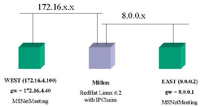 Having installed the Linux machine in the middle of the network, we delve into the TPC/IP stack so that we can create the adaption functions in a modular, nonblocking, input/output, real-time, client/server fashion. In effect, we stop the packet flow by setting up rules in IP chains and using the libpcap interface to bring the stopped packets up to user space for analysis and, ultimately, compression/decompression. Having physically reproduced the architecture of Figure 2, it is a trivial matter to establish an uninterrupted teleconference session whose packets are forced through your Linux machine. IP forwarding must be enabled for this to function, particularly since we are going to stop the flow of packets with the use of IP chains. To verify that IP forwarding is indeed enabled, type: