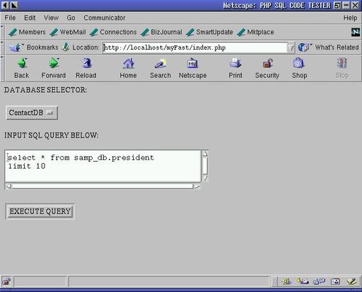 So let's see the example. With a browser, load the examples in Listing 1, and you should see something like Figure 1. Select a database with the selector, enter a query, press the EXECUTE button and the results of your query are displayed (see Figure 2).