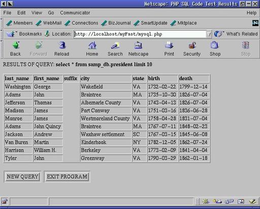 For me, parse( ) was the hardest method to understand. This method parses a template, makes the data-for-tag substitution and stores the result in a local variable. The local variable is the first parameter to parse( ). The second parameter is the file handle we defined in define( ). If the second parameter to parse( ) begins with a “.” we append the new value to the previous, if any. We use this technique to populate the database selector in the example. The PHP program's main muscle will be used to retrieve or calculate data for assigning and parsing.