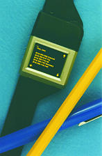 IBM showed off a second-generation Linux wristwatch at CeBIT. This one is smaller than the original and features a bright yellow OLED (organic light-emitting diode) 640 x 480 pixel display. The watch face is now 0.65" x 0.87" in size, and the battery life has been increased to between four and six hours, as a result of some tweaking of the kernel by IBM. Let's see...that means the watch only needs to have six hour marks, instead of the usual twelve, right?