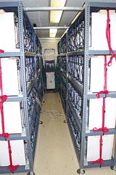 For our project we decided to build a cluster from scratch using standard PC parts. The acronym COTS, for commodity off-the-shelf technology, is often used to describe this approach. The main constraint was that we needed a large number of PCs and a lot of memory because of the size of the meshes we wanted to use in our simulations. Communications and I/O are not a big issue for us since the PCs spend most of their time doing computations, and the amount of information exchanged between PCs is always comparatively small. Therefore, our particular application would not benefit significantly from the use of a high-performance network, such as Gigabit Ethernet or Myrinet. Instead, we used standard 100Mbps Fast Ethernet. Due to the large number of processors required (312 in total), we used dual-processor motherboards to reduce the number of boxes to 156, thus minimizing the space needed for storage (and the footprint of the cluster). This structure impacts performance because two processors share the memory bus (which causes bus contention but reduces the hardware cost) since only one case, motherboard, hard drive, etc., are needed for two processors. We ruled out the option of rackmounting the nodes, essentially to reduce cost, but chose to use standard mid-tower cases on shelves, as illustrated in Figure 3. This approach is sometimes given the name LOBOS (“lots of boxes on shelves”). The shelving system was placed in a computer room already equipped with a powerful air-conditioning system and 156 dual-processor PCs.