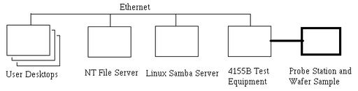 After we get a clean run, we need to save the data. The 4155B has three ways to save the data: GPIB, floppy and TCP/IP. Since we aren't controlling the analyzer with the GPIB, that's not an option. The floppy supports 3.5" disks, but these disks fill up quickly and you have to walk around with them. Since we have several lab areas where we work, it's not unheard of to have to backtrack to recover a temporarily misplaced disk. The answer we put together works because of the TCP/IP support.