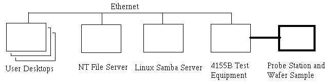 This scheme still suffers slightly from security. A savvy computer user could look at the properties of the network shortcut and then use that to make a shortcut directly to the Samba server, bypassing the NT security. An alternative would be to use the Linux box and smbmount to mount a share from the NT server and export that using NFS to the test device. We were able to mount the NT share on the Linux box, export that with NFS and then mount that on the 4155B. The problem still remaining is writing to that share, even using options with smbmount. Hopefully, in the near future we will have some time to tackle this aspect again.