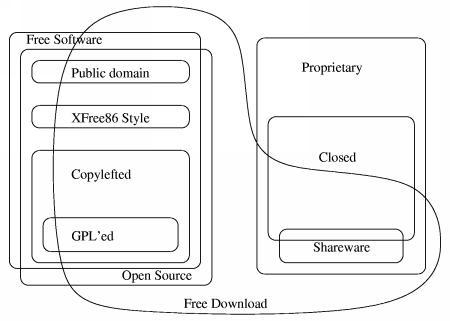 To see what I'm talking bout, check out this diagram from the Free Software Foundation's philosophy page: fsf
