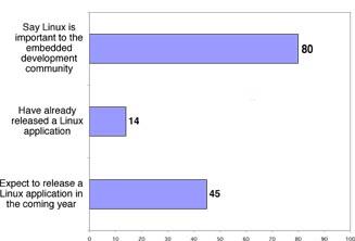 In its “Embedded Systems Developer Survey”, Evans Data reports what it calls “a dramatic change in the software content of the microprocessor-controlled devices in the workplace and in our homes”. As a result, the firm predicts a triple increase in Linux-based projects over the next year, which it says is “part of a shift toward commercially available operating systems rather than those developed in-house.”