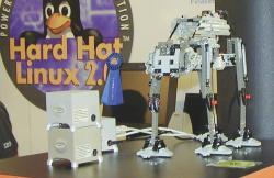 A delightful demonstration of embedded Linux-based machine control, in which Intrinsyc's tiny StrongARM-based CerfBoard SBC running HHL was shown controlling the walking of a Lego MindStorm Robot that looked like something out of a Star Wars movie. (See www.mvista.com.)