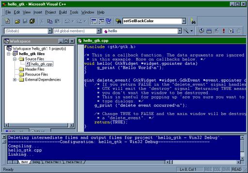 Building and running the GTK+ “Hello World” test application proves that GTK+ is installed correctly.