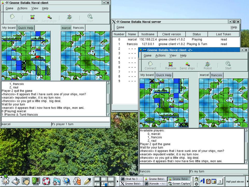This game even has been played on scraps of paper with the grids and ship positions drawn in. Now, if your long-lost friend is at the end of an internet connection on some far shore, you still can experience the joys of the game. In fact, it is even better. Ricardo Quesada is the author of Batalla Naval, a network-enabled game that takes this classic into a new realm. With this version of the game the two-player limit is gone, meaning that more can join in on the action. Now you have more to worry about than a single opponent. The excitement begins by visiting the Batalla Naval web site at batnav.sourceforge.net and downloading the latest source. Building the software will be familiar to many of you: