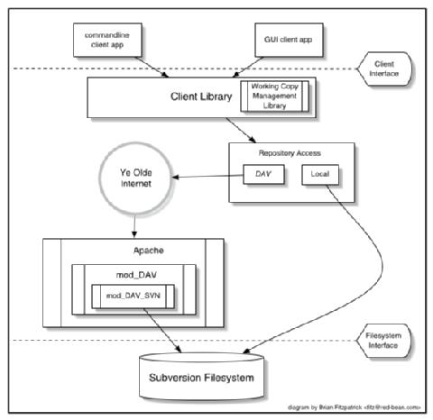 • Advanced network layer: the Subversion network server is Apache, and client and server speak WebDAV(2) to each other. (See the “Subversion Design” section below.)