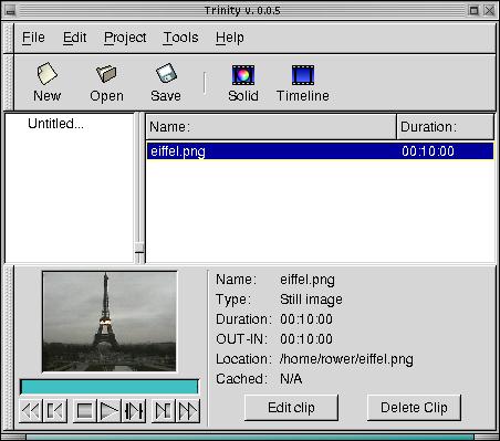 Trinity editor and maintainer Chris Hardy says it has rudimentary MPEG and audio support. Trinity can understand sequences of image frame files, too. “The source code hasn't been touched in two years”, says Hardy. “I haven't heard from the developer in a while and the project has been in limbo.” The GUI is one thing Hardy likes about Trinity.