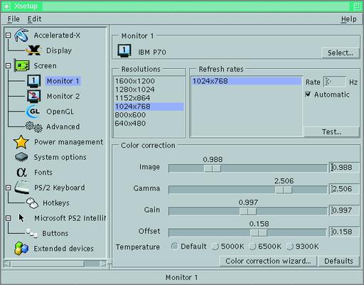 Accelerated-X features include the Color Magic color management system, DualView for dual-head displays, Video Window for high performance YUV display, Stereo 3-D viewing for shutter glasses and Power Throttle to conserve power on laptops. Accelerated-X can throttle the CPU using APCI and even turn off components of the graphics hardware when not needed. Methvin says that can add two hours of battery life to laptops over XFree86.