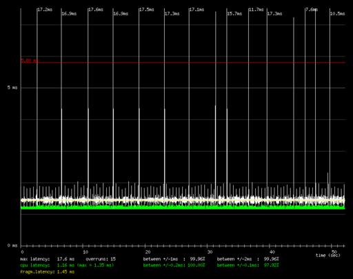 The improvement in latencytest corresponds to a reduction in both worst-case and average latency. Further tests show that the average system latency over a range of workloads is now in the 1-2ms range.