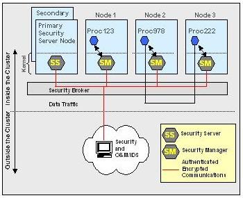 Security managers enforce security at each node of the cluster. They are responsible for locally enforcing changes in the security environment. Security managers only exchange security information with the security server.