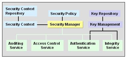 The DSI architecture at each node is based on a set of loosely coupled services. Each service, upon its creation, sends a presence announcement to the local security manager, which registers these services and provides their access mechanisms to the internal modules. Two types of services, security services (access control, authentication, integration, auditing) and security service providers (for example, secure key management), run at user level and provide services to security managers.