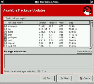 After all, it's really no big deal to me to subscribe to the Redhat-Watch-list, which Red Hat uses to announce new updates (listman.redhat.com), and to decide for myself whether it's necessary to run up2date. If it is necessary, up2date will automatically determine which updates are applicable to my system even if I haven't stored any system information at Red Hat. Therefore, my own practice (and recommendation) is to deselect the rhn_register options “Include information about hardware and network” and “Include RPM packages installed on this system in my System Profile”.