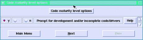 We need to enable two options in the kernel configuration. First, go to Code Maturity Level and enable development/incomplete code/drivers: