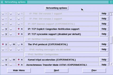 Having done that, you need to configure the new kernel to enable support for IPv6: