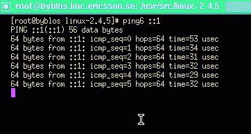 At this moment, you should have basic functionalities, as you can, for instance, ping6 your local IPv6 loopback (Figure 5).