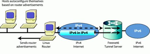 Figure 8. Freenet6 Architecture with a Router and Multiple Hosts