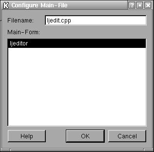 The dialog shown in Figure 1 asks us to name the main file (we choose ljedit.cpp) and the main widget. Designer does not provide the Editor subclass here; thus we don't really have a choice and choose ljeditor.