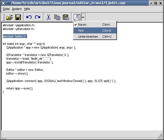 Figure 3. ljedit.cpp (Internationalized Version—German)