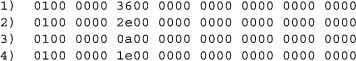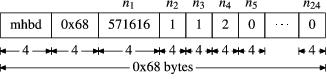 We start at the top of the file and focus on the mhbd chunk. Given its frequency and its location at the start of the file, it probably contains header information for the whole file. We know it is 0x68 bytes long, and we accounted for only eight of those bytes with our standard tag and chunk length fields. Everything else thus far consists of 4-byte numbers and we have a multiple of four bytes left, so we will break up the remaining 96 bytes into 24 4-byte numbers, as shown in Figure 6.