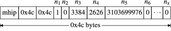 We know that a playlist is a named list of songs with a title. We found the name already, but we need to figure out how the list of songs is stored. We start by looking at the mhip chunk in Figure 18. n5 is the same order of magnitude as the date we found earlier. We saw n4 (2626) in the mhit data at n2. Thus, we can guess that n4 is a song identification number and that the mhip chunks use song identification numbers to specify which songs are in the playlist. We can add a test to the validation program to match n4 in the mhip chunks, with n2 in the mhit chunks to confirm our theory.