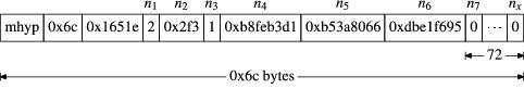 The mhyp chunk (see Figure 20) is the final chunk we need to evaluate. n1 is always 2. n2 is the number of songs in the playlist. The master playlist has n3 set to 1; all other playlists have it set to 0. n4 is a date, probably the date the playlist was created. n5 and n6 are the same for every mhyp chunk, and 72 null bytes always follow them.