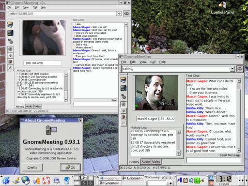 Since opening this restaurant, I have had the pleasure of discovering that many of my childhood dreams have become possible when cooking with Linux. So it is for the video phone, or at least, a passable incarnation of it: Damien Sandras' GnomeMeeting. GnomeMeeting even will work with Microsoft Netmeeting so you can talk to your friends running that company's OS. Finally, don't let the name fool you. GnomeMeeting works extremely well with KDE and docks nicely into the panel.