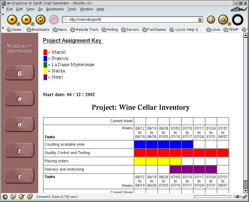 Figure 1. Simple Web Creation of Gantt Charts
