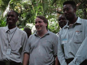 That meeting took place early in the morning, after which most of us headed to Dunn's River Falls, which cascades for hundreds of yards over limestone boulders on its way to the sea. Dunn's is an interactive river: the idea is to climb it upstream from bottom to top. It's a little scary but a lot of fun. We probably set a new record for the number of otherwise smart people carrying digital cameras up the middle of a cascading jungle river. For a full description of all the events, see parts 1 and 2 of “Geeks on the Half Shell 2.0: Cruising the New Dominion with Linus and Friends” (www.linuxjournal.com/article/6419 and www.linuxjournal.com/article/6422, respectively).
