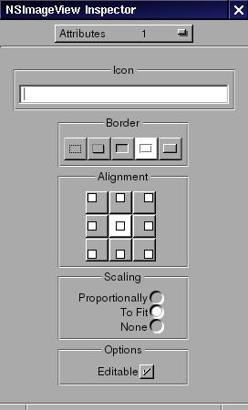 Figure 5. The Inspector Window for the Attributes of NSImageView