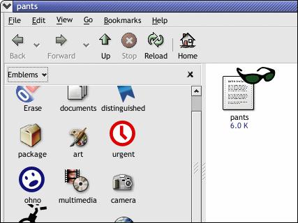 An integral part of GNOME is Nautilus, a graphical interface for managing files and configuring Linux. The simplest way to access Nautilus is by double-clicking on the Home icon on the desktop. Nautilus is a comprehensive drag-and-drop file manager. You can copy and move files by key strokes, by dragging and dropping a file's icon from one window to another or by right-clicking on a file's icon and selecting a choice from the pop-up menu. The pop-up menu also provides a screen for modifying permissions and ownerships. You also can now add graphical markers to icons associated with specific files to earmark them (e.g., important or personal).