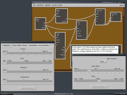 Most modules cheerfully accept arbitrary input connections and have little or no concern for the destination of their own outputs. But beware; when modules are connected in atypical configurations, the output can be quite unusual or even overpowering, so take care with your system volume control when testing such patches. Each module has its own dialog (shown in Figure 2), which is opened by right-clicking over the module's name.