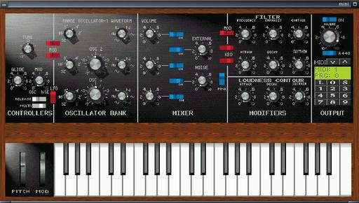 I would need much more space to describe each of Bristol's interfaces adequately. The example I've placed at www.linux-sound.org/sounds demonstrates only the Mini Moog emulation, but it should give you an idea of what you can expect from this synth engine—some old-school synthesizer fun.