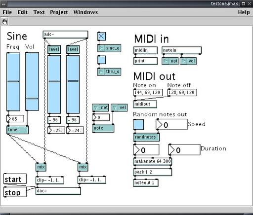 Graphic patching SWSS environments like jMax and Pd are another indicator of this blurring tendency. They also provide graphics widgets that can be used to construct synthesizer interfaces, but unlike Csound, these widgets are an integral aspect of the basic working environment. jMax and Pd utilize a unique combination of graphics and language primitives that are patched together by virtual wires to create a synthesis or processing network. These environments certainly can be employed as softsynths, but their generality of purpose places them closer to Csound than to the softsynths reviewed here.