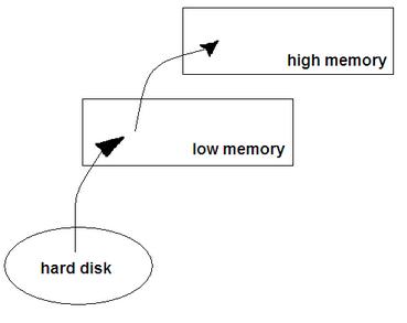 The next issue was eliminating the bounce buffer used when performing I/O into high memory. In the 2.4 kernel, an I/O transfer from a block device into high memory has to make an unfortunate extra stop. High memory is non-permanently mapped memory for which the kernel must provide special support. On Intel x86 machines, this is any memory over about 1GB. Any I/O request into high memory (for example, reading a file from a hard drive into a memory address greater than 1GB) must make use of a special bounce buffer that resides in low memory. The rationale is that some devices may be unable to understand high memory addresses. The result is devices always must perform their I/O transfers into low memory. If the final destination is in fact high memory, the data must bounce from the block device to low memory and finally into high memory (Figure 2). This extra copy introduces significant overhead. The 2.5 kernel now automatically supports transferring directly into high memory, eliminating the bounce buffer logic for devices that are capable.