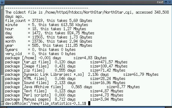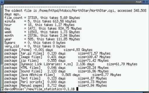 This utility scans any portion (or all) of the filesystem tree and provides fairly detailed statistics regarding the files on that system. If you happen to be running Debian or a Debian-based system, such as Knoppix, you can receive even more information on the associated dpkg files. This program uses the access times rather than creation or modification times to tell you how “old” or stale a file is. Chances are, files not accessed during the past five years are either historical archives or cruft. Requires: Perl.