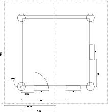 Figure 3. A floor plan for a cabin. Measurements for the holes are taken from the endpoints of the wall in which they appear.