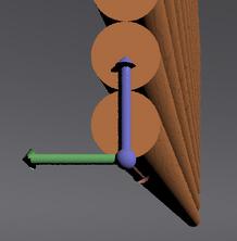 There are four walls, each 15 feet long. I chose the southwest corner of the cabin to be (0,0,0), increasing x to the east, increasing y to the north and increasing z up. This orientation faces the building south, according to the standard-generated sky from gensky. genlogwall always places the generated wall at (0,0,0) along the x axis, as shown in Figure 4.