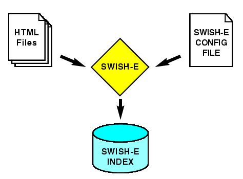 The -c option specifies which SWISH-E configuration file to use. On an older system, building this index may take a few minutes or so; on a contemporary one, it should take under a minute. Figure 1 illustrates the process of indexing HTML files on the filesystem with SWISH-E.