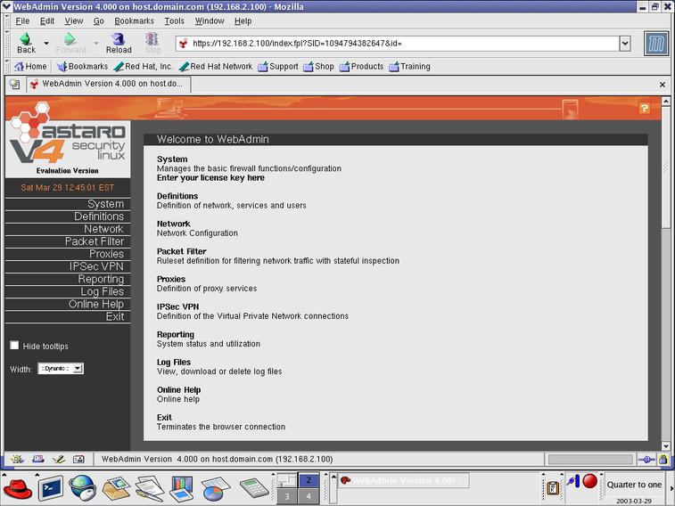 Astaro Security Linux (ASL) V4 is a nifty all-in-one firewall product. Billed as an affordable enterprise-level security solution, Astaro delivers an impressive array of security features in one package. ASL V4 is a software product, not an appliance, so you need to provide your own hardware for it.