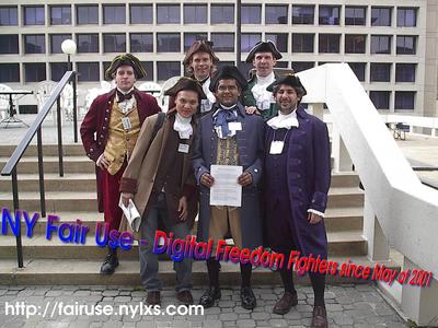 New York City's fair use activists, costumed as the American Founding Fathers, left the warm comfort of their homes at 4:00AM on March 17, 2003, to attend the EGOVOS conference at George Washington University in Washington, DC.