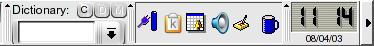 For rapid-fire access to Kdict, you can pop a handy little applet into your Kicker panel. Here's how: right-click on the big K, select Panel menu®Add®Applet®Dictionary. Now, you should see a new program applet labeled Dictionary with three small buttons to the top right on your Kicker panel. On first start, only the C button is visible (define selected text), and the other two are grayed out.