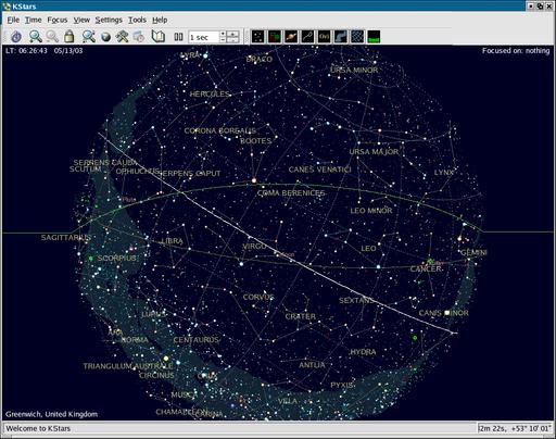 The CD-ROM includes the KDE-EDU package, a nice collection of educational and recreational programs. This household's favorite is KStars, shown in Figure 4.