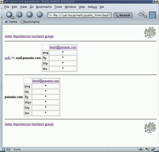 nefu, another monitor for services on your network servers, can test for a number of well-known services, or you can write your own scripts. One thing nefu understands that some others don't is dependencies. That is, if you tell nefu about a router between it and your mail server, and the router goes down, the router is noted as down in an e-mail to you, not the mail server, which may be down. Requires: libresolv, libnsl, libssl, libcrypto, glibc and libdl.