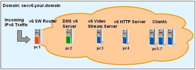 In this section, we present a sample network scheme (Figure 1) with different IPv6 servers.