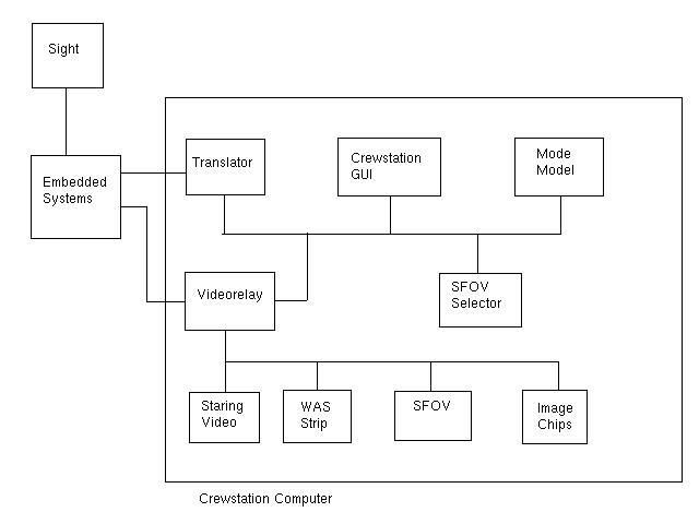 In the current version of our project, a separate process takes input from the hand grip and controls the mouse pointer using a combination of XWarpPointer and the X server's XTest extensions (see Resources). The crewstation also displays video generated from data sent by the embedded side. The video relay process reads this from a socket and dispatches it to a window. There are four windows: framing video, WAS, SFOV and image chips.