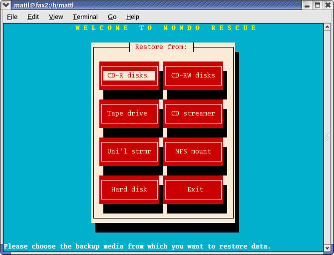 To use mondoarchive in interactive mode, boot to the CD and type interactive. A menu appears asking you how you want to restore (Figure 2).